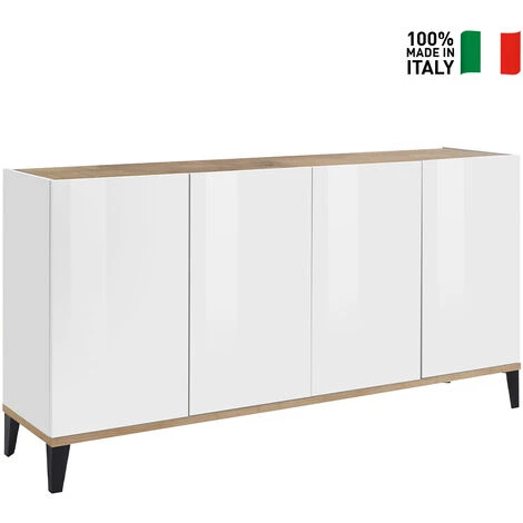 Spacieux et robuste, ce buffet est entièrement fabriqué en Italie par la marque spécialisée AHD avec des matériaux de qualité exceptionnelle. Le style sobre, moderne et élégant permet de placer ce meuble presque n’importe où, aussi bien dans une salle à manger que dans un salon, réussissant en tout cas à s’intégrer harmonieusement au caractère global de la pièce. L’espace de rangement est divisé entre quatre portes avec ouverture battante, organisées intérieurement en autant de compartiments avec deux étagères. Le montage est très simple et, en se référant pas à pas aux instructions de l’emballage, cela prendra quelques dizaines de minutes.