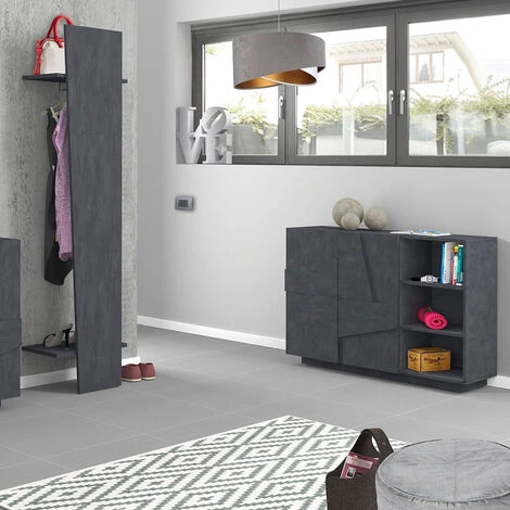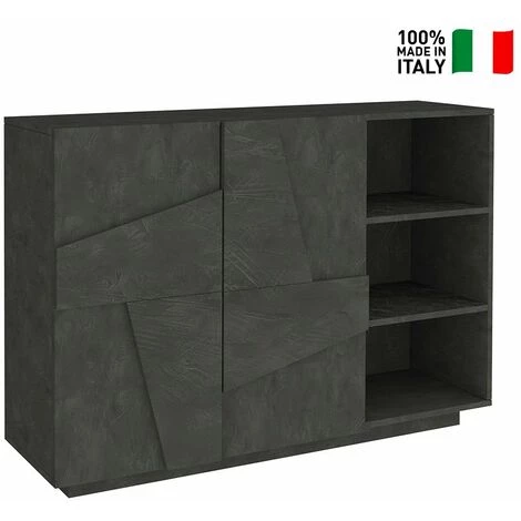 Entièrement fabriqué en Italie, le buffet Ping Kommode Ardesia est fabriqué en bois de qualité certifié FSC et se compose d’une structure robuste avec une base qui offre un excellent maintien ainsi qu’une stabilité parfaite au sol. La structure est composée de deux sections : la première, avec le plus grand espace, s’ouvre par deux portes battantes et est divisée par une étagère centrale; à côté de cette section, il y a trois compartiments ouverts qui offrent l’espace idéal pour placer des livres, des photos de famille, des plantes, des sculptures, divers cadres et tout ce que vous voulez.