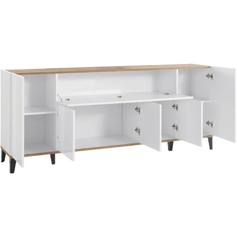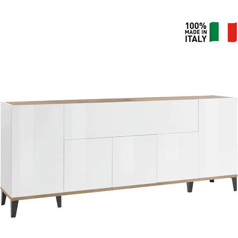 Ce meuble 100% Made in Italy peut être placé selon vos goûts dans n’importe quel environnement, de l’entrée au salon, du couloir à la cuisine. Caractérisé par un style sobre et élégant, ce buffet est entièrement réalisé en bois certifié FSC et, pour favoriser une organisation rationnelle du contenu, l’espace de rangement a été divisé entre cinq portes battantes (les deux latérales ont chacune une étagère interne) et un compartiment central avec ouverture rabattable. Avec sa profondeur de 40 cm, ce buffet est une solution peu encombrante, idéale pour les petites maisons ou pour tirer le meilleur parti de chaque centimètre carré disponible. Les opérations de montage nécessitent l’intervention d’une seule personne et, en suivant les instructions étape par étape, seront très faciles et intuitives.