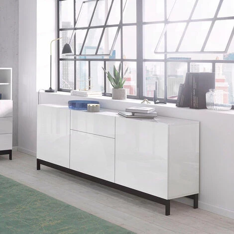Metis Four Up est un meuble au design raffiné 100% Made in Italy qui se caractérise par ses dimensions et son excellente fonctionnalité : utile à la fois dans le salon et dans le couloir ou dans la salle à manger, grâce aux nombreux espaces offerts, il s’avère être une solution d’ameublement pratique mais surtout spacieuse qui en fonction de vos besoins peut être utilisée aussi comme buffet pour distribuer de manière plus ordonnée les divers objets de la maison et de la cuisine. Ce meuble polyvalent est entièrement fabriqué en Italie avec une structure en bois de qualité certifié FSC solide et résistant et une surface lisse et sans poignée recouverte de résine en mélaminé qui le rend résistant à l’usage quotidien, aux chocs et aux rayures. La structure est composée d’un confortable tiroir coulissant en position centrale avec un système d’ouverture push to open et de trois grands compartiments avec une ouverture battante, dont deux, ceux latéraux, séparés à l’intérieur par une étagère pratique qui offre l’espace nécessaire pour ranger soigneusement tout type d’objet, grand ou petit, comme la vaisselle, les couverts pour le service de table et tous les objets pour la cuisine. Le plateau de support de 170 cm de long peut être facilement utilisé pour afficher des photos ou des décorations, pour placer des lampes, des bibelots, des vases avec des fleurs et tout autre élément dispersé dans la maison.