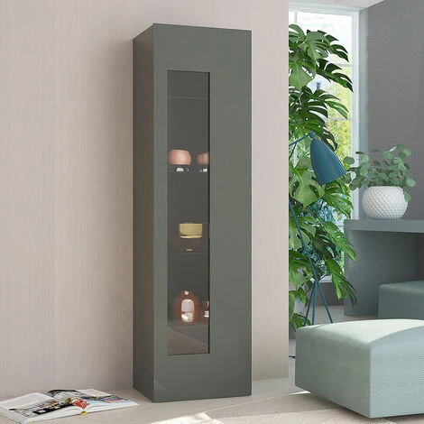 Fabriquée en Italie avec des matières premières de haute qualité, l’élément qui caractérise le plus cette vitrine est sans aucun doute sa ligne sobre et contemporaine qui donne encore plus d’élégance à l’environnement dans lequel elle est placée. La vitrine est fabriquée en bois certifié FSC très robuste et résistant avec une surface revêtue de résine en mélaminé couleur ardoise raffinée qui lui permet de s’intégrer facilement dans différents styles d’ameublement. La structure se compose d’un panneau avant équipé d’une porte battante avec 4 étagères en verre à l’intérieur qui offrent la possibilité de mettre en valeur des objets de valeur et d’afficher des décorations uniques. Compte tenu de sa capacité, la vitrine peut également être utilisée pour stocker des livres, des volumes et des cristaux et en raison de sa taille, elle convient à différents environnements, même les moins spacieux.