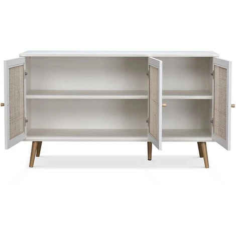 Ce buffet 3 portes est aussi très pratique car il offre un grand espace de rangement. Vous pourrez y ranger votre vaisselle, vos verres ou votre linge de table. Pour optimiser le rangement, l’intérieur est divisé en 2 niveaux. Il est solide et stable grâce à ses 5 pieds (dont un central). Ce meuble deviendra rapidement un indispensable de votre quotidien. <br/>Caractéristiques