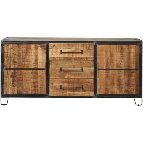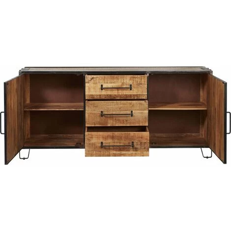 Buffet 2 Portes 3 Tiroirs Manguier et Métal Vieilli de la gamme Baagh.