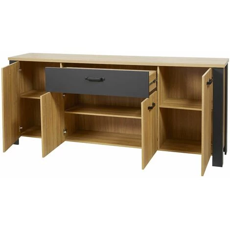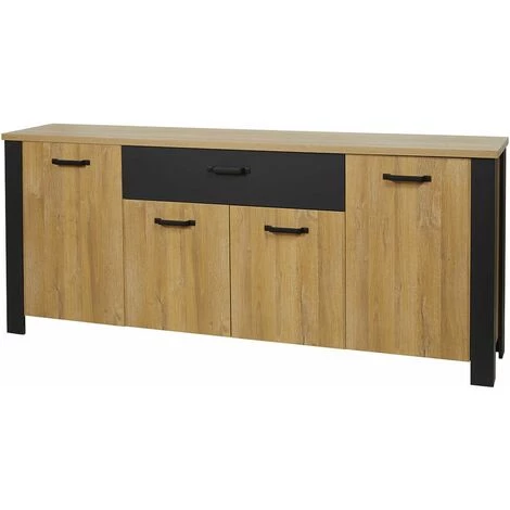 Buffet 4 Portes Effet Bois et Piètement Noir de la gamme Daniel.