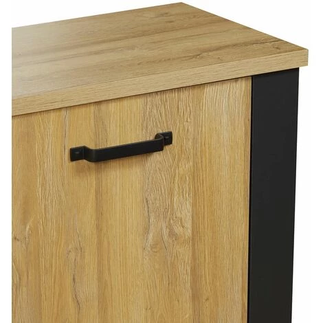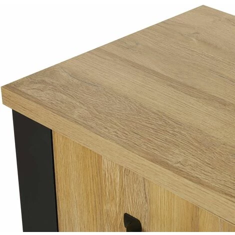 Structure en panneaux de particules. Revêtement papier décor bois. Piètement en panneaux de particules, revêtement papier décor uni noir.