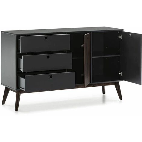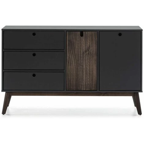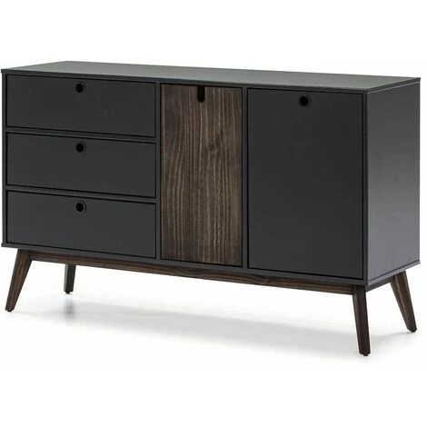 Buffet 2 Portes 3 Tiroirs Bois Naturel et Gris foncé de la gamme Lily.