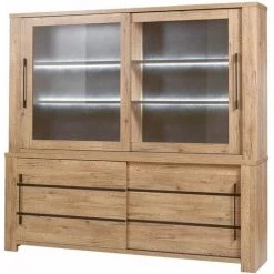 Vaisselier : Structure en panneaux de particules. Revêtement Papier décor bois. Eclairage Led inclus.