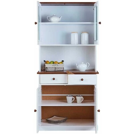 Buffet Vaisselier 4 Portes 2 Tiroirs Pin Massif Vernis Sepia et Blanc Socoa.