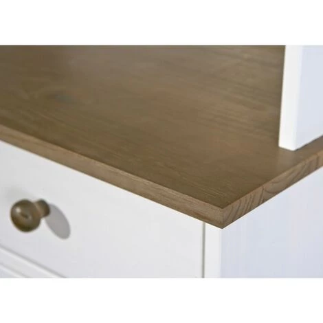 Structure en pin massif vernis coloris blanc. Plateau en pin massif vernis coloris sépia. Profondeur partie supérieure : 31cm env.