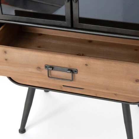 Sublimez votre pièce principale avec le meuble EUGENE en bois et métal de style industriel, il dispose de 2 portes et de 2 tiroirs pour un rangement optimal, vous serez séduit par son élégance et sa touche originale unique. Complétez la collection avec nos autres modèles de meubles de la gamme EUGENE pour harmoniser votre décoration intérieure.
