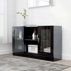 Cette armoire à vitrine tendance, avec son utilité pratique, se veut un supplément idéal à votre pièce. Cette armoire de rangement, fabriquée en aggloméré de première qualité, est durable et stable. Le buffet dispose de 2 compartiments et de 2 portes, offrant un grand espace de rangement pour les livres, les appareils multimédia et d’autres articles, rendant votre pièce propre et bien rangée. Le dessus de table robuste est également idéal pour exposer des objets décoratifs, des cadres photo et des plantes en pot. De plus, cette armoire est facile à nettoyer avec un chiffon humide.