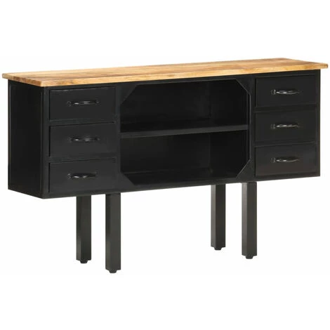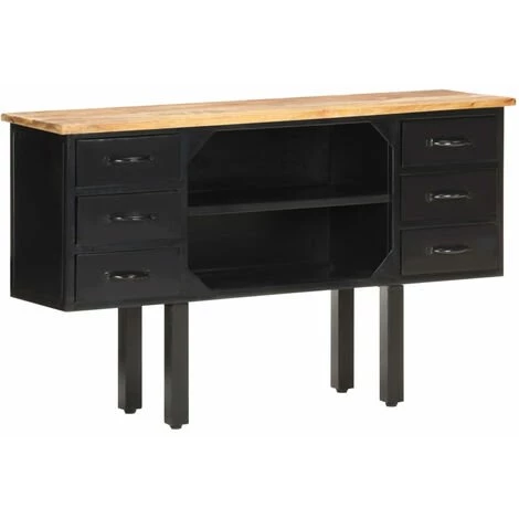 Ce buffet en bois de style industriel dégage un charme vintage et se veut un excellent supplément à votre intérieur. Fabriqué en bois massif de manguier brut, ce meuble est stable et durable. Les magnifiques grains de bois rendent chaque meuble unique et légèrement différent l’un de l’autre. Le buffet a un dessus robuste, sur lequel vous pouvez placer des paniers de fruits, des vases ou d’autres objets décoratifs. Ce buffet dispose également de 6 tiroirs et de 2 compartiments, qui offrent suffisamment d’espace pour garder une variété d’articles. Remarque importante : Les couleurs varient d’une pièce à une autre, rendant chacune d’elle unique ; la livraison est aléatoire.
