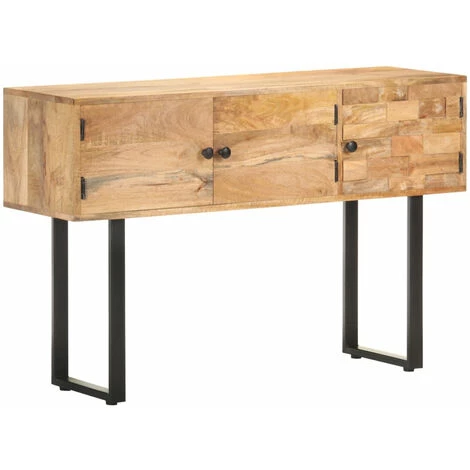 Ce buffet en bois ajoute un aspect industriel à votre décoration intérieure. L’armoire latérale est faite de bois massif de manguier avec une finition en bois naturel, un bois dur tropical avec la force de soutenir le poids. Il résiste également à l’usure du temps, ce qui le rend stable et durable. Le savoir-faire et les belles veines du bois rendent chaque meuble unique et légèrement différent l’un de l’autre. Elle dispose de deux compartiments derrière trois portes pour offrir un grand espace de rangement. De plus, le dessus robuste est idéal pour afficher des objets décoratifs tels que des cadres photo, des plantes en pot, des vases, etc. Remarque importante : les couleurs et les grains peuvent varier d’une pièce à l’autre, rendant chaque pièce unique ; la livraison est aléatoire.