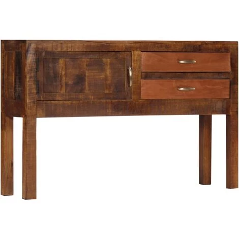 Ce buffet dégage un charme intemporel qui sera un supplément accrocheur à votre décoration intérieure. Cette armoire vintage est fabriquée en bois de manguier solide, un bois dur à grains denses. Le bois brut de manguier a non seulement la force de supporter le poids, mais résiste également à l’usure du temps. En conséquence, cette table d’appoint est extrêmement stable, durable et accrocheuse. Le savoir-faire exquis et les grains de bois élégants rendent chaque meuble distinctif et légèrement différent l’un de l’autre. De plus, cette armoire en bois solide dispose de 2 tiroirs et d’1 armoire avec porte, offrant un espace de stockage pour vos vêtements, livres, ainsi que divers autres articles. Remarque importante : Les couleurs et le grain du bois peuvent varier d’une pièce à l’autre, ce qui rend chaque table d’entrée unique ; la livraison est aléatoire.