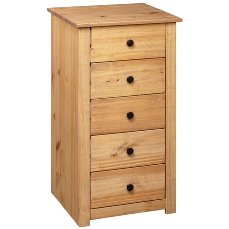 Complétez votre chambre à coucher, votre salon ou votre bureau avec notre buffet en pin massif ! Elle peut également être utilisée comme support de téléphone à côté de votre canapé ! Fabriqué en bois de pin massif, ce meuble à tiroirs Panama est extrêmement durable et robuste. Le buffet offre un grand espace de rangement avec 5 tiroirs. En outre, le dessus de table robuste est idéal pour afficher des objets décoratifs, des cadres photo ou des plantes en pot. Il est facile d’essuyer avec un chiffon sec. Le support de téléphone est facile à assembler.