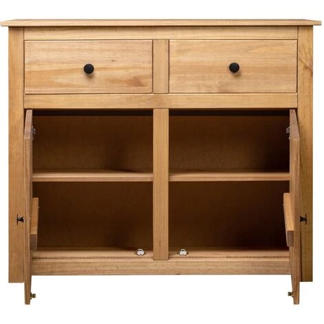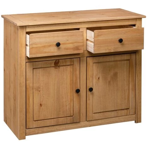 Avec un design rustique et tendance, ce buffet en bois de pin massif ajoutera une touche décorative et pratique à votre décoration. Conçu avec 2 tiroirs et 2 portes, le buffet garde vos magazines, livres, DVD et appareils multimédias bien organisés et à portée de main. Son dessus robuste est idéal pour placer des objets décoratifs tels que des vases ou des plantes en pot. L’armoire est en bois de pin massif. Chaque étape du processus est réalisée avec le plus grand soin, que ce soit le polissage, la peinture ou le laquage. L’artisanat exquis et les grains de bois esthétiquement attrayants rendent chaque meuble unique et légèrement différent l’un de l’autre. Remarque importante : les couleurs et les grains varient d’une pièce à l’autre, rendant chacun de nos meubles unique ; la livraison est aléatoire.