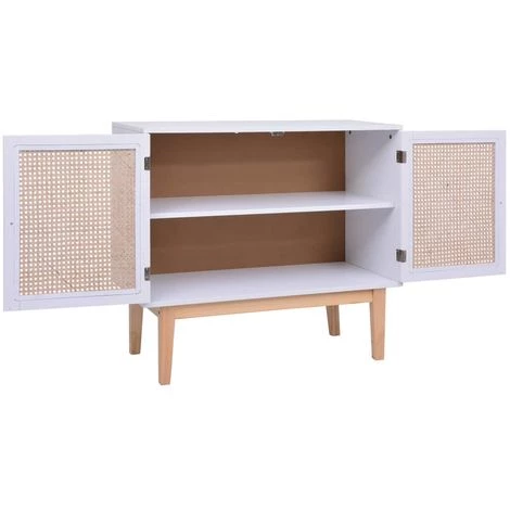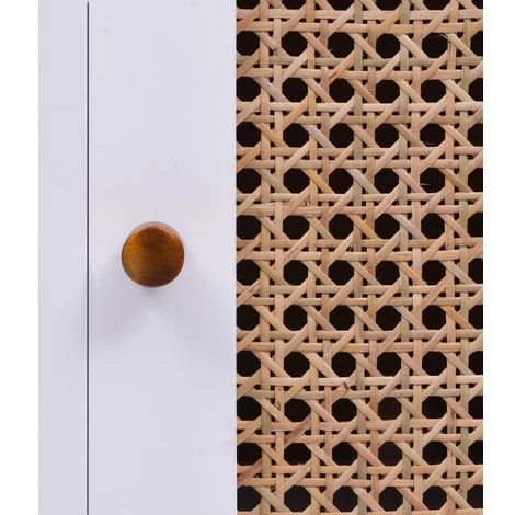 Ce buffet saisissant est sans aucun doute le point de mire de votre espace de vie ! Ce buffet est en MDF, ce qui le rend très robuste et durable. Son design élégant en rotin en fait un ajout décoratif convivial et exceptionnel à votre maison. Les pieds en pin massif ajoutent à la stabilité de l’armoire latérale ainsi qu’à son style industriel. L’armoire offre également un grand espace de rangement pour garder vos divers articles organisés. Le produit est facile à assembler.