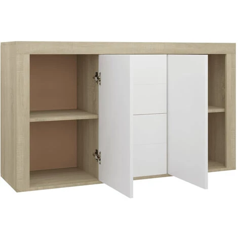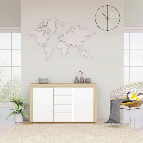 Le buffet est destiné à devenir un complément idéal dans votre pièce avec son utilité pratique. Le buffet avec 2 portes et 4 tiroirs offre un grand espace de rangement pour les livres, les appareils multimédia et autres articles. Le dessus de table robuste est idéal pour afficher des objets décoratifs, des cadres photo ou des plantes en pot. Ce buffet est conçu pour durer grâce au matériau de qualité supérieure. L’armoire à tiroirs est facile à nettoyer avec un chiffon humide. Cette armoire de rangement est facile à assembler.