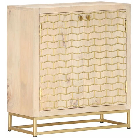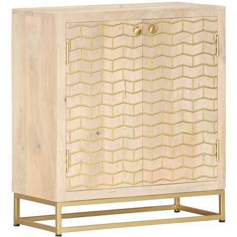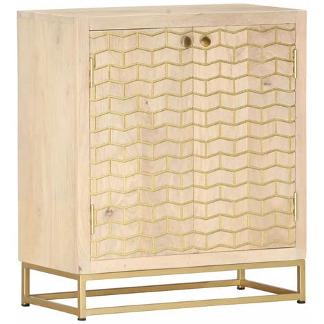Notre buffet se caractérise par une finition dorée et ajoutera une touche de luxe à votre espace de vie. Le buffet est fait en bois de manguier massif et est très stable et durable. Le dessus robuste est idéal pour placer des objets décoratifs tels que des vases ou des plantes en pot. Le meuble dispose de deux portes qui offre un grand espace de rangement pour garder vos objets divers bien organisés. Les motifs décoratifs contribuent au charme rustique du buffet. Remarque importante : les couleurs peuvent varier d’une pièce à l’autre, ce qui rend chaque pièce unique et légèrement différente l’une de l’autre ; la livraison est aléatoire.