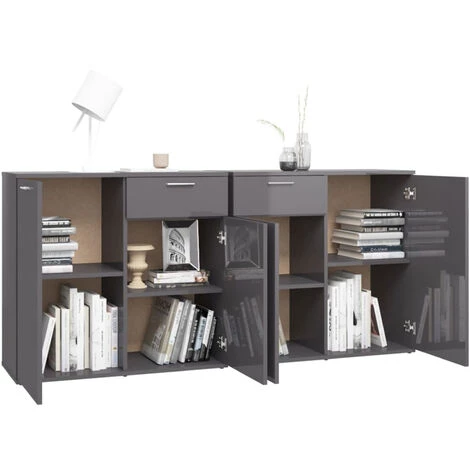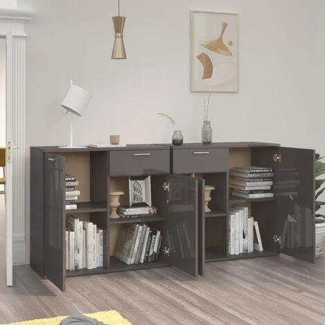 Ce buffet dotĂ© d’un design minimaliste sera un ajout pratique mais Ă©galement trĂšs dĂ©coratif Ă votre maison. Avec 4 portes et 2 tiroirs au total, le buffet offre un grand espace de rangement pour les livres, les appareils multimĂ©dias et d’autres objets. Le dessus robuste est idĂ©al pour exposer des objets dĂ©coratifs, des cadres photo ou des plantes en pot. De plus, cette armoire est facile Ă nettoyer avec un chiffon humide.