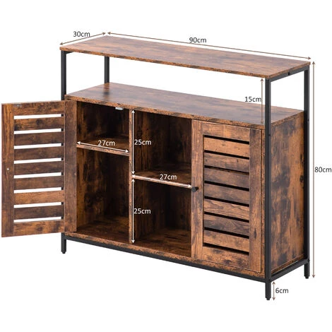 ASUPERMALL Buffet Rangement Deux Portes Armoires De Cuisine Placard Design Industriel Cadre En Acier Vintage Marron + Noir 90 * 3