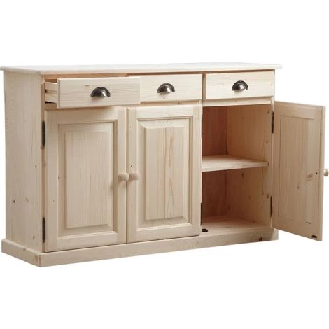 Meuble personnalisable à volonté, ce grand buffet brut 3 portes 3 tiroirs ne manque pas de charme de par son design naturel. De conception robuste, il gagnera en durabilité si vous décidez de le customiser. Signé Aubry Gaspard, ce mobilier à la fois rustique et contemporain bénéficiera d’une garantie de douze mois à l’acquisition.