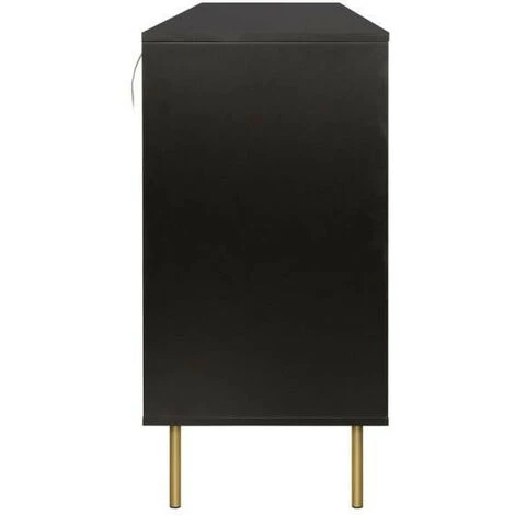 Buffet avec 2 portes et 3 tiroirs en MDF laqué noir et cannage de rotin naturel