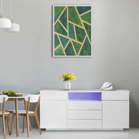 LUX Buffet – 2 portes – 5 tiroirs – Luminaire LED inclus – En MDF laqué haute brillance