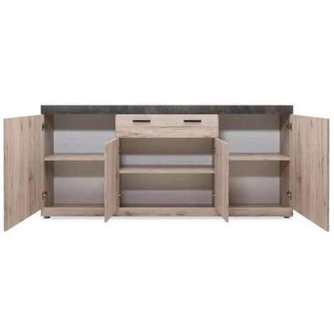 AUTRES Buffet – Décor Chene Sorrento Et Béton – Contemporain – 4 Portes – MALTA – L 200 Cm