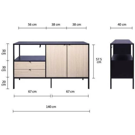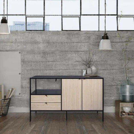 AUTRES Buffet MINSK – Bois Et Métal – Imitation Bois – 2 Portes 2 Tiroirs – L 140 X P 40 X H 80 Cm