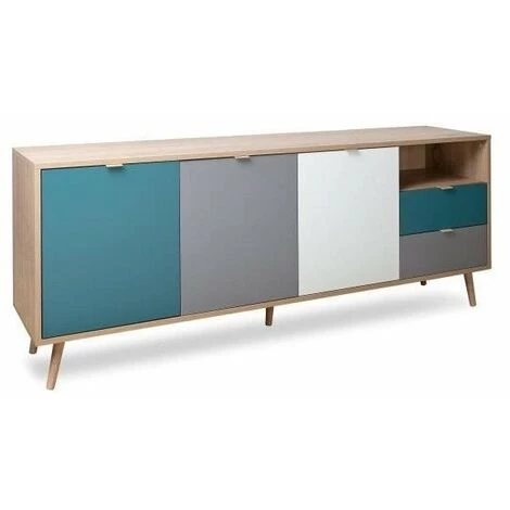 Cuba est une gamme contemporaine de meubles de séjour et salle a manger, aux lignes épurées avec un patchwork de couleurs harmonieux. Les pieds scandinaves en bois massif et les touches de gris et bleu pétrole offrent un design tendance a ce produit. Ce bahut bas, avec trois portes, deux tiroirs et une niche, est aussi une vraie solution de rangement pour votre vaisselle et vos autres objets du quotidien. Il sublimera votre séjour en tout point. De plus, il est fabriqué dans l’Union Européenne.