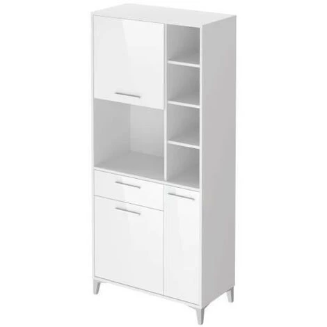 ECO Buffet de cuisine – Structure en panneaux de particules mélaminés blanc brillant pour les façades et blanc mat pour les structures – Style et design contemporain – 3 portes, 1 tiroir et 3 étageres – Fabrication européenne – Dimensions totales L 80 x P 40 x H 178 cm.