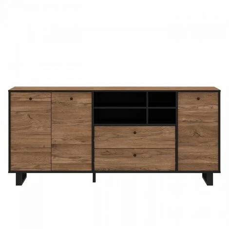Enfilade 3 portes 2 tiroirs – Décor chene et noir – L 180,8 x P 42 x H 81,6 cm – SEWILL