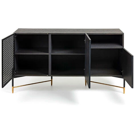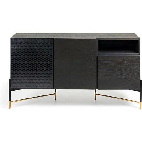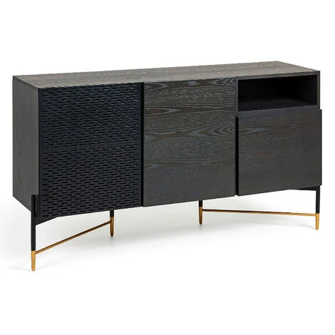 IDMARKET Buffet Bas 3 Portes ESTER En Métal Noir Et Plateau Bois – Noir