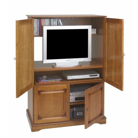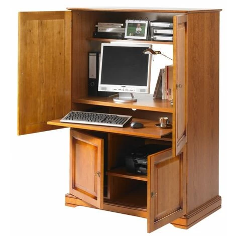 Armoire informatique plaquée Merisier Louis Philippe 4 portes