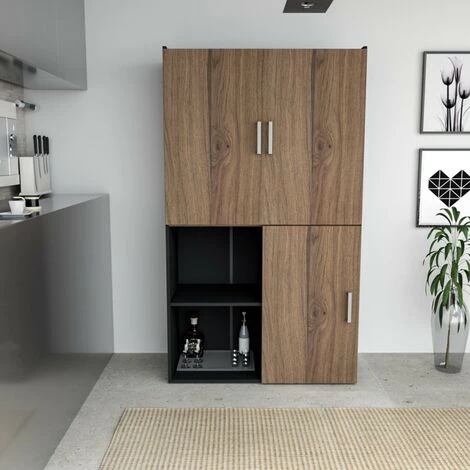 Buffet de Cuisine avec Table intégrée. Coloris Noir et Imitation Châtaignier.