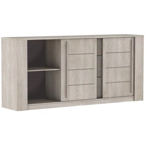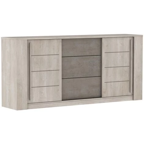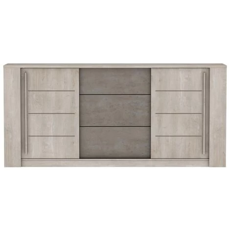 RÉNOVEZ VOTRE SALON AVEC CE BUFFET DE HAUTE CAPACITÉ ET DE STYLE CONTEMPORAINBuffet moderne bicolore en chêne champagne et béton. Il se compose de 2 portes coulissantes qui comprennent une étagère réglable en hauteur pour maximiser l’espace et de 3 tiroirs montés sur coulisse à billes avec ouverture push.Matériel :: Mélamine haute résistance de 15 / 22 mm d’épaisseurCouleurs disponibles :: Chêne Champagne / Béton BeigeDimensions :: 206 x 44,9 x 94 cmEmballage :: 2Dimensions de la caisse :: 92,5 x 60,4 x 13 cmDimensions de la caisse 2 :: 214 x 47 x 9 cmPoids net :: 74,5 KgPoids brut :: 84 KgHauteur :: 94 cmEtat :: Livré en Kit, Facile à assembler. Inclus :: Toutes la visserie, pièces et instructions de montage.Important :: Entretien au chiffon doux et légèrement humide, ne pas utiliser de produits ammoniaqués, dissolvants ni abrasifs.