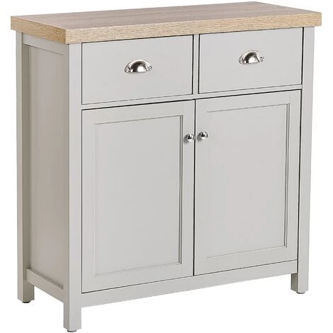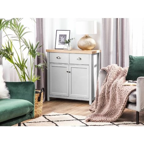 Buffet au style vintage avec 2 tiroirs et compartiment Ă portes. Cette commode spacieuse couleur grise et bois clair est un magnifique meuble de rangement qui s’adaptera parfaitement Ă la dĂ©coration de votre sĂ©jour, chambre ou entrĂ©e. La commode se compose de deux tiroirs, deux compartiments de rangement et deux portes, en vous offrant ainsi beaucoup dâespace de rangement. Le meuble s’intĂ©grera bien avec la table basse et la table de nuit du mĂȘme modĂšle, disponibles dans notre catalogue.