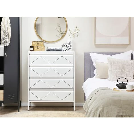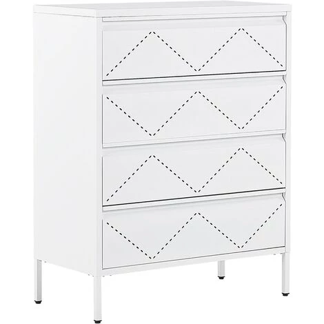 Armoire de rangement en acier. Moderne, fonctionnel et Ă©lĂ©gant, ce coffre est le meilleur choix d’unitĂ© de rangement. Ses quatre tiroirs sont parfaits pour ranger des vĂŞtements, documents ou autres petits objets. Le motif en losanges perforĂ©s sur les façades souligne le style industriel du mobilier. Cette commode spacieuse complĂ©tera parfaitement n’importe quelle pièce de la maison, du bureau, de la chambre Ă coucher ainsi que du salon. Sa surface enduite de poudre et sa structure mĂ©tallique solide garantissent la durabilitĂ© et une facilitĂ© a l’entretenir.