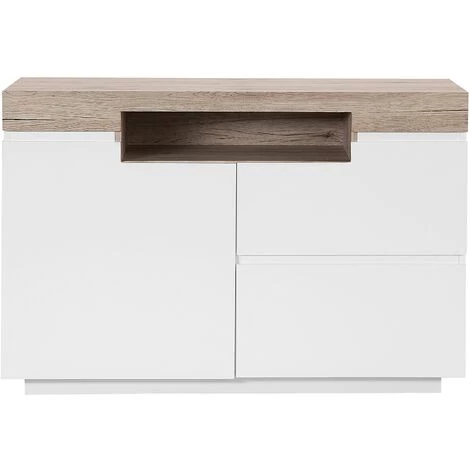 Caractéristiques clés: Tiroirs pratiques et ouvertures avec mécanisme stable, Finition effet bois pour un look naturel, Style minimaliste, Matières robustes faciles à entretenir, Espace de rangement fonctionnel
