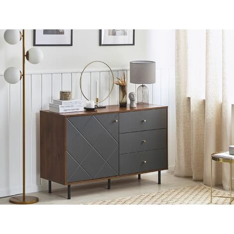 Commode buffet Ă©lĂ©gante au style moderne avec 3 tiroirs pratiques . Cette magnifique commode est un meuble de qualitĂ© qui s’intĂ©grera parfaitement Ă la plupart de styles de dĂ©coration. Sa finition brillante, le motif quadrillĂ© de la porte et les poignĂ©es dorĂ©es donnent Ă ce buffet un look rĂ©solument moderne et très tendance. Que ce soit dans votre salon, chambre ou Ă l’entrĂ©e de votre domicile, il vous offrira un espace de rangement spacieux et pratique. Cette commode est Ă©quipĂ©e de trois tiroirs et d’un compartiment de stockage. Polyvalente et multifonctionnelle, elle peut Ă©galement servir comme meuble TV.