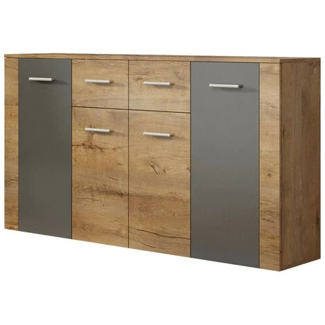 Le buffet Gaspard, au coloris bois et gris, apportera de la modernité à votre pièce de vie et s’intégrera parfaitement avec votre décoration.