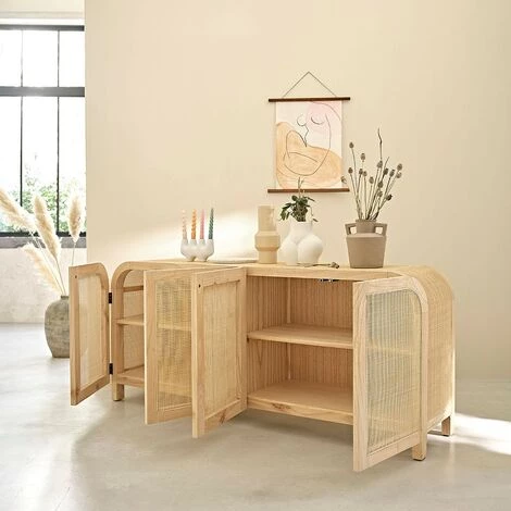 C’est au sein de votre salle à manger que notre buffet en bois de mindi et cannage trouvera sa place. Doté de 4 portes avec ouverture push and pull, vous allez adorer ce joli buffet chic et naturel.