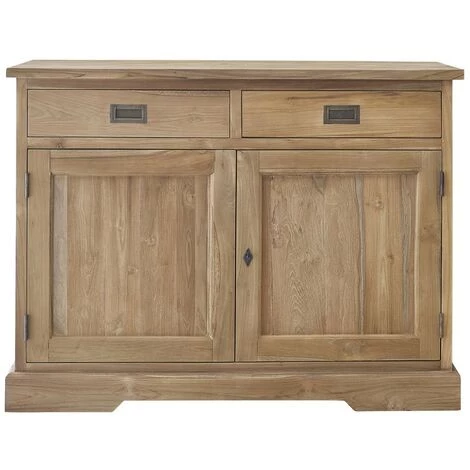 Toutes les qualités d’un beau buffet en bois de teck sont réunies. Idéal dans un salon ou une salle à manger, il propose un volume de rangement intéressant avec ses 2 tiroirs et 2 portes battantes.