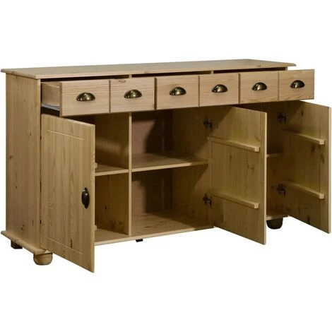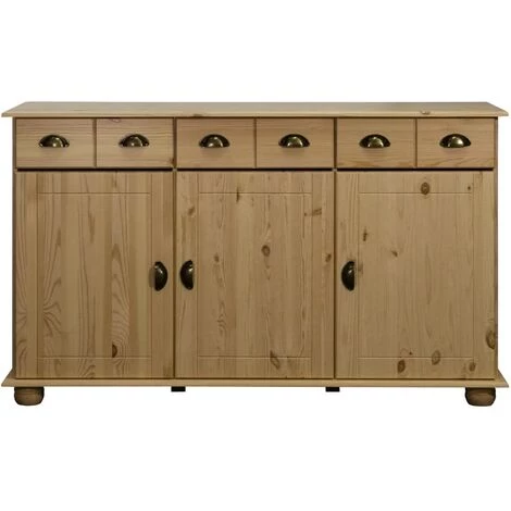 L’armoire de rangement est en bois de pin massif, ce qui la rend stable et durable. La poignée incluse facilite l’ouverture de la porte et du tiroir. Cette armoire dispose de trois tiroirs et trois portes, offrant amplement d’espace de rangement pour vos articles. De plus, le dessus robuste est idéal pour exposer des objets décoratifs tels que des cadres photo, des plantes en pot, des vases, etc.
