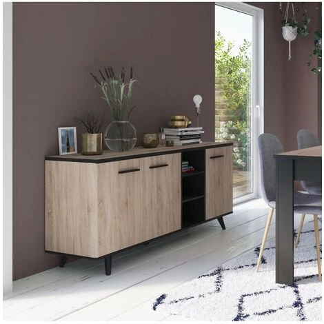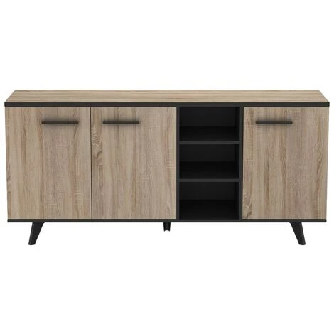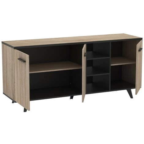Avec son style industriel, le Buffet 3 Portes et 3 Niches L160,7 cm – Wayne apporte au living une touche de modernité ! Ses 3 portes dissimulent une étagère réglable sur plusieurs niveaux et ses 3 niches ouvertes offrent un très bel espace de rangement accessible rapidement.