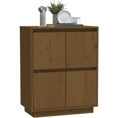 Cette armoire latérale est fabriquée en bois de pin massif et en MDF, assurant sa construction robuste et durable. Avec ses 4 portes, l’armoire offre un vaste espace de rangement pour les livres, les appareils multimédias et autres objets. Le dessus robuste est parfait pour exposer des objets décoratifs, des cadres photo et des plantes en pot. De plus, l’armoire à portes est dotée de pieds flottants.