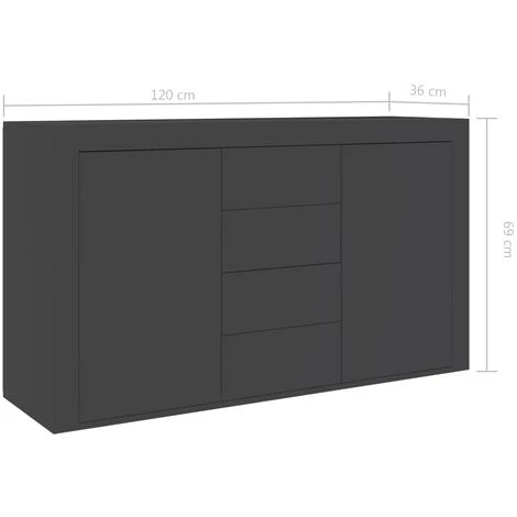 Le buffet avec 2 portes et 4 tiroirs offre un grand espace de rangement pour les livres, les appareils multimédia et autres articles. Le dessus de table robuste est idéal pour afficher des objets décoratifs, des cadres photo ou des plantes en pot. Ce buffet est conçu pour durer grâce au matériau de qualité supérieure. L’armoire à tiroirs est facile à nettoyer avec un chiffon humide.