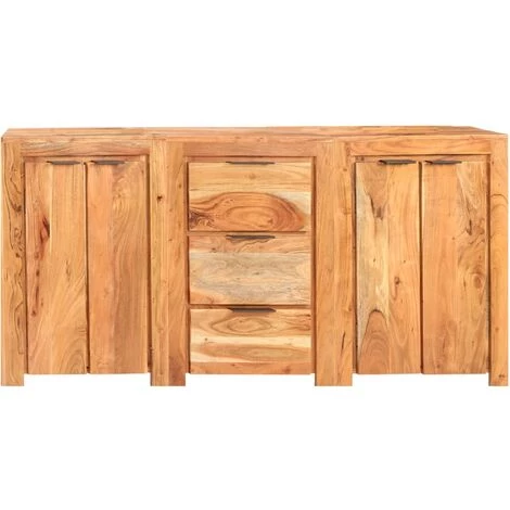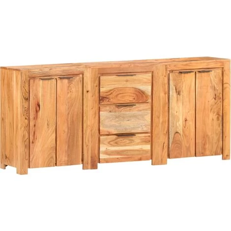 Cet ensemble est fabriqué en bois d’acacia massif, ce qui le rend stable et durable. Le savoir-faire et les beaux grains de bois rendent chaque meuble unique et légèrement différent l’un de l’autre. Il dispose de 4 portes et de 3 tiroirs, offrant un espace de rangement suffisant pour ranger vos articles essentiels organisés et à portée de main.