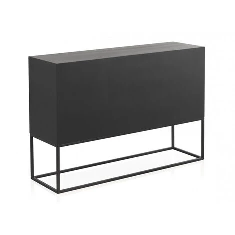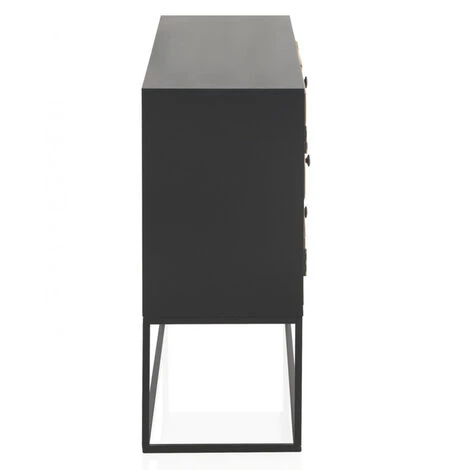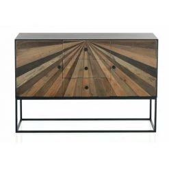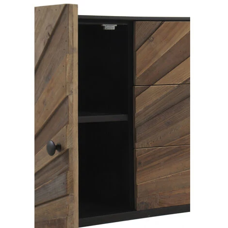Buffet, bahut 2 portes et 3 tiroirs en panneau MDF, pieds et poignées en métal noir Façade avec lattes en bois de sapin recyclé multicolore Contient double étagère intérieure Dimensions : Longueur 120 x Hauteur 80 x Largeur 35 cmcouleur : noirPoids : 26,5 kg